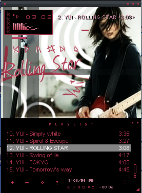 <<Note>> For best view you’ll need the Suicidal Machineers MAROON Plugin (to make the visualization transparent) and the YunaSoft SexyFont plugin (to view the customized positioning of the song name).