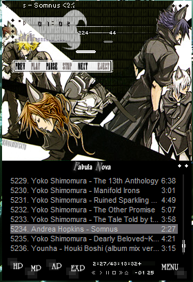 <<Note>> For best view you’ll need the Suicidal Machineers MAROON Plugin (to make the visualization transparent) and the YunaSoft SexyFont plugin (to view the customized positioning of the song name).
