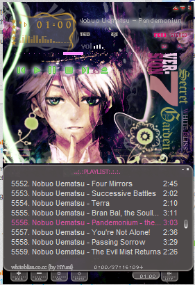 <<Note>> For best view you’ll need the Suicidal Machineers MAROON Plugin (to make the visualization transparent) and the YunaSoft SexyFont plugin (to view the customized positioning of the song name).
