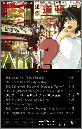 <<Note>> For best view you’ll need the Suicidal Machineers MAROON Plugin (to make the visualization transparent) and the YunaSoft SexyFont plugin (to view the customized positioning of the song name).