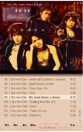 <<Note>> For best view you’ll need the Suicidal Machineers MAROON Plugin (to make the visualization transparent) and the YunaSoft SexyFont plugin (to view the customized positioning of the song name).